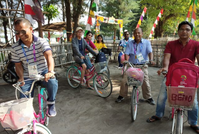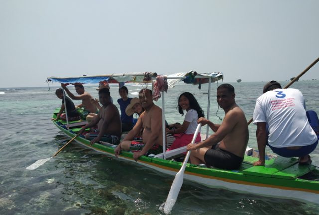 আমাদের গাইডকে পাওয়া গেল দ্বীপে পৌঁছেই। তার নাম জানা হয়নি। সবাই মিলে সাইকেল নিয়ে সৈকতে। আমি শটস নিয়ে যাইনি বলে সেখান থেকেই কিনে নেওয়া হলো। পোশাক বদল করে নেমে গেলাম পানিতে। স্যার ঠিকই সুইমিং কস্টিউম নিয়ে গিয়েছিলেন। একসঙ্গে সাঁতার কাটা হলো স্বচ্ছ নীল জলে। তারপর নৌকা ভাড়া করে ঘোরাঘুরিও। স্যার নিজে বৈঠা বাইলেন। স্মৃতিচারণা করলেন ছেলেবেলার। আঞ্চল বিচ থেকে জাহাজে উঠে পেয়েছিলাম ইউক্রেনের ট্রাম্পোলিন জাজ ক্যাটারিনাকে। সঙ্গে তার ইন্দোনেশিয়ান ভলান্টিয়ারকে। ওরাও আমাদের সঙ্গে নৌকায় চড়ল। মনে হচ্ছিল আমরা সুন্দরবনের ম্যানগ্রোভ বনের ভিতর দিয়ে চলেছি। অনেক দূর পর্যন্ত গেলাম। বেশ গভীর। কিন্তু স্বচ্ছ জল। নিচ পর্যন্ত দেখা যায়। অনেকক্ষণ দাপাদাপি করে ফিরে এসে গোসল করে কাপড় বদলে গাছতলায় বসে লাঞ্চ সারা হলো। সুপ, নাসি (ভাত), মাছ ভাজা, টফু আর স্যালাড। সঙ্গে ফল (তরমুজ)। শুকনো ভাত তাই সুপকে ডাল হিসেবেই নেওয়া হলো। খাবারের স্বাদ মন্দ ছিল না। আর খিদায় এই খাবারই অমৃত মনে হচ্ছিল।