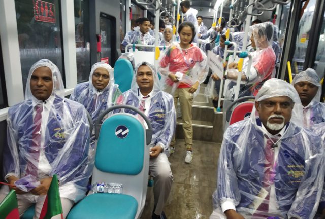 রেইনকোট পরে বাসের ভেতরে তৈরি সবাই