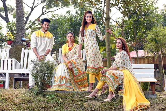 ফাল্গুন উৎসব উপলক্ষে দেশীয় ফ্যাশন হাউস রঙ বাংলাদেশে তৈরি করেছে বিশেষ কালেকশন। যেখানে রঙ হিসেবে প্রাধান্য পেয়েছে গোল্ডেন হলুদ, কাঁচা হলুদ, কমলা, গেরুয়া, ম্যাজেন্টার সঙ্গে আরও সহকারী হিসেবে গাজর, কমলা, টিয়া, সবুজ, নেভি ব্লু ও ফিরোজা রঙে উজ্জ্বল হয়েছে প্রতিটি ফাল্গুনের পোশাক। ফ্লোরাল মোটিফে মূলত ট্র্র্যাডিশনাল পোশাকই থাকছে এই কালেকশনে। পাশাপাশি থাকছে ফিউশনের নান্দনিক মিশেলের সম্ভার। সুতি, লিনেন, এন্ডি, সিল্ক, হাফসিল্ক কাপড়ে পোশাকের নকশাকে ফুটিয়ে তোলা হয়েছে নানা ভ্যালু অ্যাডেড মিডিয়ার ব্যবহারে। এর মধ্যে রয়েছে ব্লক প্রিন্ট, স্ক্রিন প্রিন্ট, হাতের কাজ, কারচুপি ইত্যাদি।