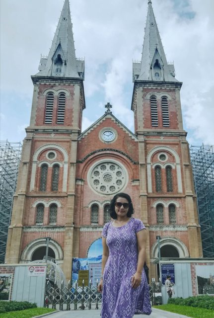 নটর ডেম ক্যাথেড্রাল ডি সায়গনের সামনে লেখক