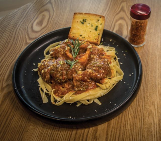 এরপরে এল ওসোবাকো। সমুদ্রপারের ইতালি থেকে এবারে উত্তুরে কেতার খাবার। যারা মনে করেন ইতালিয়ান খাবার মানেই পিৎজা-পাস্তা-অলিভ অয়েল আর হার্বসের কারিগরি; তাদের জন্য একটা ধাক্কাই বটে। অটোমান সাম্রাজ্যের ছোঁয়া লাগা ইউরোপীয় কুজিনের প্রভাব লোম্বার্ডি খাবারে পুরোপুরি বিদ্যমান। তাই এখানে অলিভ অয়েলের বদলে আসে বাটার, মাছের বদলে মাংস। টমেটো এখানে ব্রাত্য। ওসোবাকোর অর্থ হলো বোন উইথ হোল। খাঁটি বাংলায় বলা যেতে পারে নলি-পায়ের গোড়ালি থেকে হাঁটুর মাংসের ক্রস কাট। বেশ ঝোল ঝোল হাঙ্গেরিয়ান গুলাশের মতন। টেবিলে এল স্প্যাগেটির সঙ্গে। তবে খানিকটা হতাশ হলাম উপরে লেমন জেস্ট, গার্লিক আর পার্সলে কুচি না পেয়ে! তবে সে দুঃখ বেশিক্ষণ স্থায়ী হয়নি। কারণ, ততক্ষণে অস্থির ভেতরের মজ্জায় মজে গেছি। আর মাংসও বেশ নরম হয়ে উঠেছে বহুক্ষণ চুলোর উপরে থাকায়।