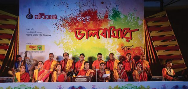 বসন্ত আর বিশ্ব ভালোবাসা দিবস উপলক্ষে ১৪ ফেব্রুয়ারি আয়োজন করা হয় শুধুই ভালোবাসার গান। যেখানে পরিবেশন করা হয় রবীন্দ্রনাথ ঠাকুরের বসন্ত আর প্রেমের গান। সাদি মহম্মদের নেতৃত্বে টানা দেড় ঘণ্টা চলে অনুষ্ঠান। সঙ্গে ছিলেন শিল্পী আমিনা আহমেদসহ সংগীত সংগঠন রবিরাগ-এর ১৯ সদস্যের একটি দল। কেন্দ্রীয় গণগ্রন্থাগারের শওকত ওসমান স্মৃতি মিলনায়তনে অনুষ্ঠান শুরু হয় যৌথ কণ্ঠসঙ্গীতের মধ্য দিয়ে। বসন্ত আর ভালোবাসার গানের ফাঁকে দর্শক অনুরোধে তালিকার বাইরে গিয়ে সাদি মহম্মদ গেয়ে শোনান ‘সখি ভালোবাসা কারে কয়’ গানটিও। তিনি বললেন, ‘পৃষ্ঠপোষকতা ছাড়া গাইব কী করে? আমি তো গাইতেই চাই। কিন্তু পৃষ্ঠপোষকতা ছাড়া তো এমন অনুষ্ঠান আয়োজন করা সম্ভব নয়। আমাদের এই অনুষ্ঠানের পাশে যদি মীনাবাজার আর মীনা ট্রাস্ট এগিয়ে না আসত, তাহলে তো এত সুন্দর একটি আয়োজন হতো না। আমরা গান শোনাতে পারতাম না।’
