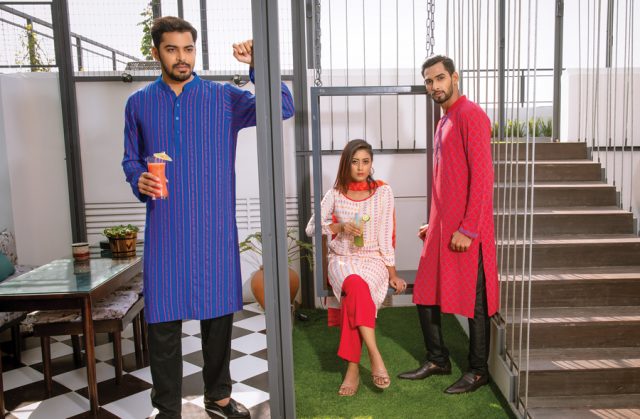 জিগজ্যাগ প্রিন্টের লিনেন পাঞ্জাবি