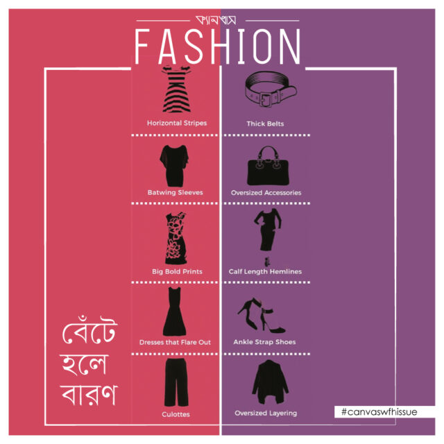 এতে আরও নাতিদীর্ঘ দেখাবে আপনাকে। সেক্ষেত্রে এই ফ্যাশন পিসগুলো এড়িয়ে যাওয়াই ভালো।