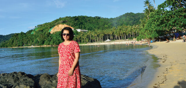 কাচের মতো স্বচ্ছ সমুদ্রে স্বপ্নের পাখায় ভর করে আমরা পৌঁছালাম প্রথম দ্বীপ ‘সেভেন কমান্ডো আইল্যান্ড’-এ। ভিক বলল, ‘বড় বোট তাই তীরে নেওয়া যাবে না। তোমরা জলে নেমে হেঁটে পাড়ে চলে যাও। এই সৈকতে স্নোর্কলিং করার ব্যবস্থা আছে। যে যার জিনিসপত্র নিয়ে বুকসমান জল পার হয়ে তীরে এলাম। সহযাত্রীদের বেশির ভাগ জোড়ায় জোড়ায় এসেছে। আমি স্লো ট্রাভেলার। কারও আশায় না থেকে দ্বীপের এক মাথা থেকে অন্য মাথা পর্যন্ত তীর ধরে হাঁটলাম। নারকেল বাগান ঘেরা, সবুজ পাহাড়ের প্রাচীর দেওয়া দ্বীপ দেখা শেষ হলে স্নোর্কলিংয়ের গিয়ার পরে ডুব দিলাম জলের নিচের জগতে। কত জাতের, কত রঙের মাছ যে ছুটে ছুটে ছোঁয়াছুঁয়ি খেলল আমার সঙ্গে! নীলাভ সবুজ সমুদ্র আরও কাছে টেনে নিল, নিজের বুকের ভেতরে। সমুদ্রকে বললাম, ‘বাইরে যেমন তুমি সুন্দর তেমনি ভেতরেও তোমার সৌন্দর্য অসম্ভব আকর্ষণীয়। শুধু ডুবে যেতে ইচ্ছে করে।’ এভাবে ডুবলে কারও প্রাণহানি অবশ্য হয় না।