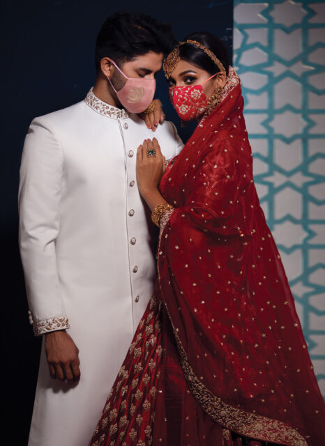 লকডাউনের সময় বিয়ের আয়োজন থেমে নেই। অতিমারির প্রকোপে এসবের আনুষ্ঠানিকতায় বেশ কিছু পরিবর্তন এসেছে। এমনকি বর-কনের পোশাকেও যুক্ত হয়েছে মাস্ক। এর আগ পর্যন্ত এটি চিকিৎসা উপকরণ হিসেবেই পরিচিত ছিল। রোগী আর চিকিৎসকের বাইরে এটি কারও নিত্যদিনের ব্যবহার্য ছিল না। এখন বিয়ের কেনাকাটার তালিকায় শাড়ি, গয়না, প্রসাধনের মধ্যে আবদ্ধ নয়। থাকছে করোনা থেকে নিরাপদে থাকার জন্য মাস্কও।