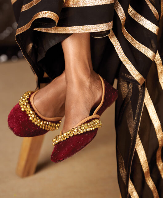 মোগল আমলের অভিজাত নকশা করা জুতা ফ্যাশনে ফিরেছে। জুতি ও নাগরা-উভয় নামেই পরিচিত এই ফুট অ্যাকসেসরিজ। এসবে রঙিন অভিজাত নকশার সঙ্গে ছোট ঘুঙুরের ব্যবহার দেখা যায়। এতে জুতির সৌন্দর্য যেমন বেড়ে যায়, তেমনি চলার সময় মৃদু আওয়াজ মন মাতিয়ে দেয়। সাধারণ পোশাকের সঙ্গে এমন জুতি সাজকে অনন্য করে তুলতে পারে। শুধু উৎসব নয়, এসব ফুটওয়্যার নিত্যদিনের আউটফিটের সঙ্গে দারুণ মানাবে।