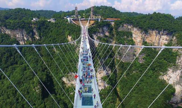 কাচের ব্রিজের ওপর টলমল করে হাঁটছি। সবচেয়ে কাছের সবুজে ঘেরা সমতল হাজার ফুট নিচে। আমার আশপাশে কয়েকজন ইতিমধ্যে চিৎকার শুরু করেছে ভয়ে। সাধারণত এ ধরনের ব্রিজের মেঝে হয় শক্ত ইস্পাতের। এটি করা হয়েছে কাচের, যাতে নিচের জগৎ পরিষ্কার দেখা যায়, আর খানিকটা অ্যাডভেঞ্চারের স্বাদও নেওয়া সম্ভব হয়। পৃথিবীর সবচেয়ে দীর্ঘ গ্লাস ব্রিজের ঠিক মাঝখানটায় দাঁড়িয়ে আছি আমি। চীন দেশে আসার আগে এ ব্রিজ সম্পর্কে জানতাম না। বেইজিং থেকে জেনে এসেছি। অবশ্য হুনান প্রদেশের ঝাংজিয়াজিই শহরে আসার প্ল্যান ছিল আগে থেকেই। এমন মায়াবী সারি সারি খাড়া পাহাড় চীন দেশ কেন, পৃথিবীতে খুব কমই আছে।
