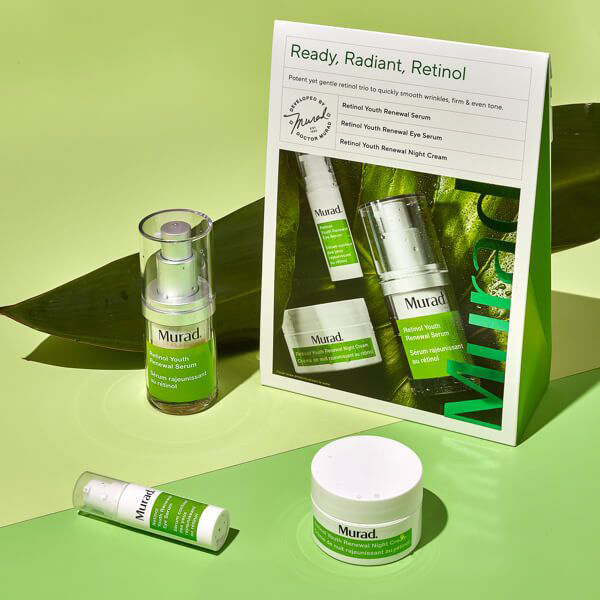 ব্র্যান্ডটির ট্রাভেল সাইজ ট্রায়ো কিট। পোটেন্ট ফর্মুলায় তৈরি। এতে থাকা রেটিনলে মসৃণ হয় বলিরেখা। ত্বক দেখায় সমানভাবে উজ্জ্বল, বাড়ে পরিপুষ্টতা। সেটটিতে পাওয়া যাবে একটি রেটিনল ইউথ রিনিউয়াল সেরাম, যা চটজলদি বুড়িয়ে যাওয়া ভাব সারাবে। রেটিনল উইথ রিনিউয়াল আই সেরাম সারাবে চোখের চারপাশের কুঁচকে থাকা এবং সূক্ষ্মরেখা। আরও থাকবে একটি রেটিনল ইউথ রিনিউয়াল নাইট ক্রিম। ত্বকের স্বাভাবিক ভাঁজগুলোকে সুডৌল রাখতে কার্যকর ক্রিমটি। সঙ্গে উজ্জ্বলতা বাড়াতেও সচেষ্ট। মুরাদ ব্র্যান্ডের রেটিনল সেটটি পাওয়া যাবে ৭৪০০ টাকায়।