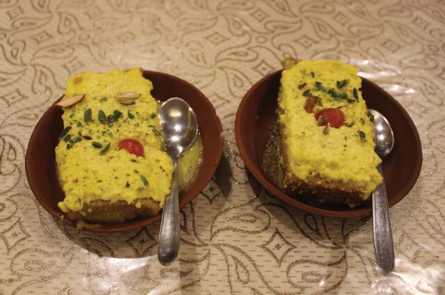 লক্ষ্ণৌ ভ্রমণ শেষে গেলাম আরেক নবাবি শহর মুর্শিদাবাদে। রাতের খাবার খেলাম রেলস্টেশনের পাশে অবস্থিত রেস্টুরেন্ট ‘মোতি মহলে’। নবাবি ভেজ পুলাও ও কোর্মা। আমাদের দেশের কোর্মার মতো লক্ষ্ণৌরটি নয়। এদের কোর্মা অনেকটা আমাদের রেজালার মতো। খাবার শেষ করে একটি মিষ্টির দোকানে ঢুকলাম। শীতকাল বলে প্রতিটি মিষ্টির দোকান এবং রাস্তাতেও গাজরের হালুয়া বিক্রি হচ্ছিল। দোকানে লাড্ডুর রকম দেখে চক্ষু চড়কগাছ। এত রকমের হতে পারে? আমাদের দেশের মতো এখানে মিষ্টি তৈরি হয় না। বানানো হয় দুধকে ঘন করে ক্ষীর তৈরির মাধ্যমে। ঢাকায় লক্ষ্ণৌ থেকে মাদার বখশ এবং আলাউদ্দীন হালুয়াই (মিষ্টি প্রস্তুতকারক) চকে দোকান খোলেন। তারা লক্ষ্ণৌর হালুয়া, বালুশাহী, সোহান হালুয়া, হাবসী হালুয়া প্রভৃতি মিষ্টান্নের সঙ্গে ঢাকা শহরের মানুষদের পরিচয় করিয়েছিলেন।