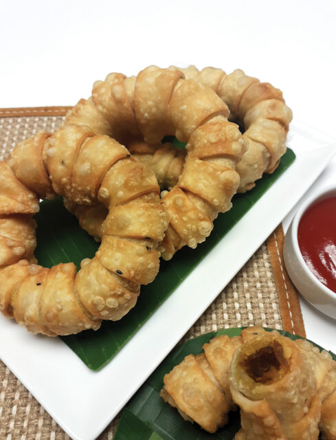 প্রণালি: ময়দার সঙ্গে তেল, লবণ, কালোজিরা ভালোভাবে মিশিয়ে পরিমাণমতো পানি দিয়ে শক্ত খামির তৈরি করে নিন। খামির ৬ ভাগ করে গোল গোল বল বানিয়ে নিতে হবে। এবার একটি বল নিয়ে ৬ ইঞ্চি সাইজের রুটি বানিয়ে নিন। রুটির এক পাশে ঝুরি মাংস দিয়ে সেটি অর্ধেক রোল করে পেঁচিয়ে নিতে হবে। এবার বাকি অর্ধেক স্ট্রাইপ করে কেটে নিন। স্ট্রাইপ করা অংশগুলো রোলের সঙ্গে পেঁচিয়ে পানি লাগিয়ে আটকে দিতে হবে। এবার আলতো করে রিং বানিয়ে ডুবো তেলে বাদামি করে ভেজে নিন।