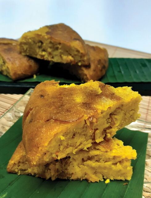 প্রণালি: চুলায় প্যান বসিয়ে চালের গুঁড়া টেলে একটি পাত্রে ঢেলে নিন। এবার প্যানে তেল গরম করে পেঁয়াজকুচি হালকা ভেজে একে একে আদা ও রসুনবাটা, হলুদগুঁড়া, মরিচগুঁড়া, জিরাগুঁড়া ও স্বাদমতো লবণসহ ভালোভাবে কষিয়ে মাংস ও কাঁচা মরিচ কুচি দিয়ে নেড়ে দিতে হবে। এবার গরমমসলার গুঁড়া দিয়ে নেড়ে নামিয়ে চালের গুঁড়ার পাত্রে ঢেলে রাখুন। পরিমাণমতো পানি দিয়ে ঘন করে গোলা তৈরি করে নিতে হবে। চুলায় ছোট সাইজের একটি কড়াই বসিয়ে সিকি কাপ তেল দিয়ে গোলা ঢেলে দিন। মৃদু আঁচে ঢাকনা দিয়ে ঢেকে দিতে হবে। কিছু সময় পরে চারপাশ লাল হয়ে এলে উল্টিয়ে আবার ঢেকে দিন। ১০-১৫ মিনিট পর নামিয়ে কেটে টুকরা করে পরিবেশন করুন।