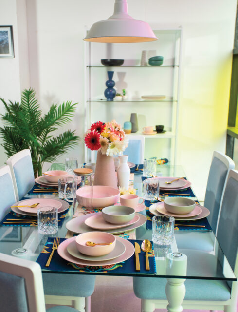 খাবার টেবিলের শোভা বাড়াতে রয়েছে সিরামিকের ফুলদানি। অফিস কিংবা বাড়ি সাজাতেও ব্যবহার করা যেতে পারে। রয়েছে পিংক সিরামিক ডিনার প্লেটস ও বোল। তা মিলবে গ্রেস সিরামিকেও। কালো, সবুজ ও গ্রে রঙে। ডিনার পার্টিকে স্বচ্ছন্দ করে জুস কিংবা পানি, সে জন্য চাই জুতসই গ্লাস সেট। ইশোতে রয়েছে নান্দনিক বটমের ভ্যার গ্লাসসেট। চারটির সমাহারে। আছে দুধরনের জগ: উলযোর ও কামি। কাটলারি নির্মিত হয়েছে ধাতব উপাদানে। নিশ্চিত করা হয়েছে মডার্ন লুক। সেটে থাকছে বড় চামচ, দুটি টেবিল চামচ, দুটি কাঁটাচামচ, দুটি ছুরি। গোল্ডেন ও সিলভার- এই দুটি রঙে মিলবে।