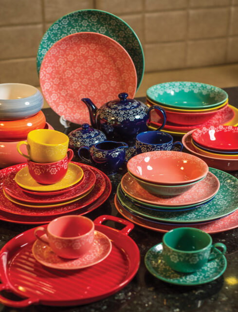 পঁয়ত্রিশ সেটের ডিনার সেট ‘ভিনটেজ মেরিগোল্ড’। তাতে রয়েছে ডিনার প্লেট, ডেজার্ট প্লেট, সিরিয়াল বোল, স্যালাড বোল ও টি সেটের কম্বো। অভিজাত লুক আনতে চারমিন কালার ও গোল্ডের কম্বিনেশন করা হয়েছে।