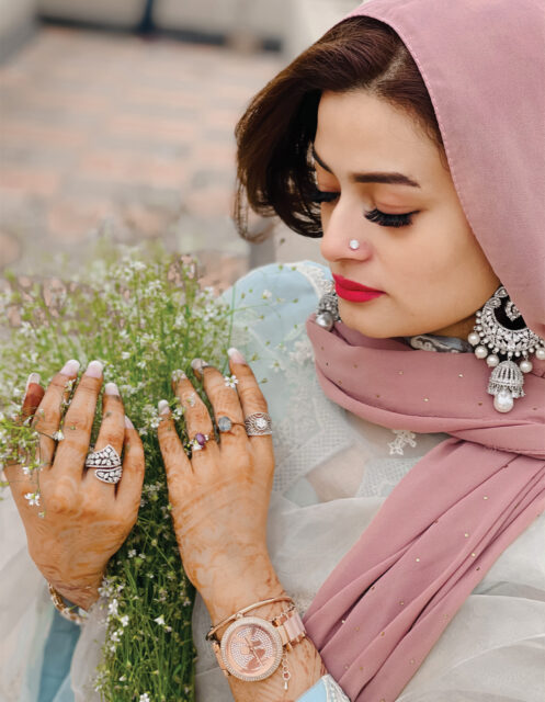 কাশফিয়া: ডিজাইনের প্রতি অনেক আগে থেকে একটা আগ্রহ কাজ করত। ছোটবেলায় গান, আবৃত্তি করতাম আর মেহেদি দিতে পছন্দ করতাম। তাই ডিজাইনের সেন্সটা চলে এসেছিল। এরপরে নিজের কাজের পাশাপাশি শুরু করলাম জুয়েলারি নিয়ে কাজ। শুধু ডাক্তার হিসেবে আমি পরিচিত হতে চাইনি। তাই ফ্যামিলি বিজনেসে না গিয়ে নিজে শুরু করলাম জুয়েলারি হ্যান্ড পিক করে সেল করা। আমাদের একটা ট্রাস্ট আছে, যেটা ১৫০-এর বেশি শিশুর দেখাশোনা করে, তাদের খরচ আমার এই বিজনেস থেকে যায়। আল্লাহর কাছে কৃতজ্ঞ যে আমি এই কাজ করতে পারছি।
