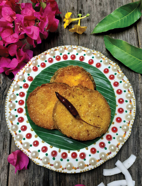 উপকরণ: বেগুন ২টি বড় গোল করে কাটা, ড্রাই কোকোনাট প্রয়োজনমতো, একটি ডিমের সাদা অংশ, লবণ স্বাদমতো, হলুদ ও মরিচগুঁড়া পরিমাণমতো।