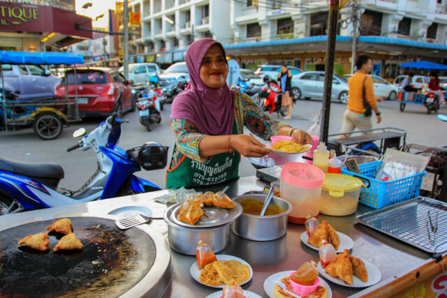 ক্রাবিতে অনেক থাই মুসলমানের বসবাস। স্ট্রিট মার্কেট জুড়ে বেশির ভাগ দোকানিই মুসলমান। বেশ পথের ধারে অস্থায়ী চুলায় রান্না করে টাটকা খাবার পরিবেশন করছে। আমাদের দেশে থাই স্যুপ নামে যে বস্তু রেস্তোরাঁয় পাওয়া যায়, তা এখানকার টম ইয়াম স্যুপের ছোটখাটো ভার্সন। এক বাটি টম ইয়াম স্যুপ প্রথমে চোখ খুলে বা বন্ধ করে টক ঝাল মিষ্টি স্বাদ নিতে নিতে খেয়ে ফেললাম। এরপর মেইন কোর্সে নিলাম প্যাদ থাই বা থাই নুডলস। কোথাও কোনো খাবার পছন্দ না হলে এটি আমার সবচেয়ে প্রিয় খাবার। এরপর বেশ আয়েশ করে ডেজার্ট হিসেবে নিলাম ক্রাবি স্পেশাল বানানা প্যান কেক। এর ভেতরে কলা ছোট ছোট করে কেটে পাটিসাপটা পিঠার মতো বানিয়ে দিয়েছে। প্যান কেক আমি অনেক দেশে খেয়েছি, নিজেও বানাই মাঝে মাঝে কিন্তু এর ধারেকাছে কেউ ভিড়তে পারবে না।