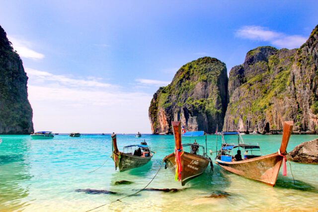 প্রথম গন্তব্য ফি ফি আইল্যান্ড। অনেকের কাছে এটি সম্ভব থাইল্যান্ডের সবচেয়ে সুন্দর দ্বীপ। স্বচ্ছ সবুজ জল, দুধ-সাদা তট আর অনেক দূরে চুনাপাথরের সারি সারি পাহাড়কে আবৃত করা বড় বড় গাছ— সবই রহস্যময়।
