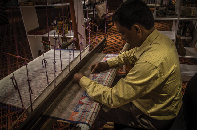স্থানীয় পণ্যের সম্ভার নিয়ে গড়ে উঠেছে এই বিপণি। সেখানে কেবল দৃষ্টিনন্দন ডিসপ্লে নয়, কাপড় বোনাও দৃশ্যমান