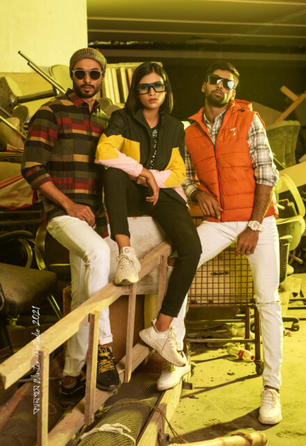 ব্ল্যাক ইয়েলো পিঙ্ক কম্বিনেশনের ক্যাজুয়াল আউটারওয়্যার। সঙ্গে ব্ল্যাক বটম