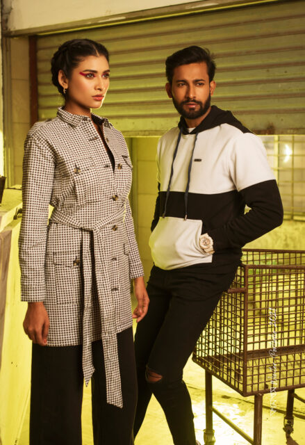 ক্ল্যাসিক ব্ল্যাক অ্যান্ড হোয়াইট হুডি।