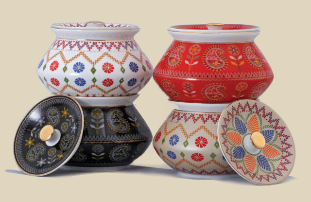হান্ডি যেন গায়ে পরে আছে নকশিকাঁথা! এমনকি জামদানিও! যেন কোনো সুনিপুণ শিল্পীর ছোঁয়ায় স্বয়ং শিল্পকর্মে পরিণত হয়েছে শুধু হান্ডি নয়, ডিনার সেট, টি-সেট, কফি মগসহ বেশ কিছু পণ্যে। থরে থরে সাজানো এমন শিল্পসম্ভারের দেখা মিলল রাজধানীর গুলশানে, আরাজ সিরামিকের আউটলেটে।