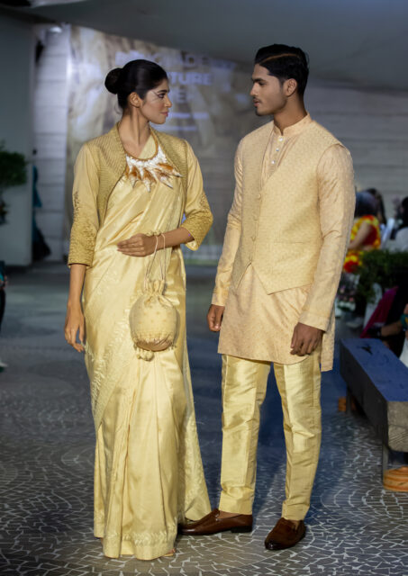 ফ্যাশন ডিজাইনার চন্দনা দেওয়ান বলেন, ‘এফডিসিবির এবারের আয়োজনে আমি ব্যবহার করেছি অরগাঞ্জা সিল্ক। অলংকরণে প্রাধান্য পেয়েছে প্যাচওয়ার্ক। একই সঙ্গে ছিল জারদৌসির কাজ, যা হাতে করা হয়েছে। ইস্ট এবং ওয়েস্টের ফ্যাশন একত্র করে এবারের পোশাক নকশা করেছি।’ তিনি আরও বলেন, ‘এফডিসিবি থেকে আমাদের চাওয়া ছিল দেশের পঞ্চাশতম বছরকে বিশেষভাবে উদ্যাপন করে বিশ্বের কাছে তুলে আনা। রেশমি কাপড় বাংলাদেশের একটি সম্পদ। বিশ্ব দরবারে এই পণ্যকে উপস্থাপন আমাদের দায়িত্ব।’