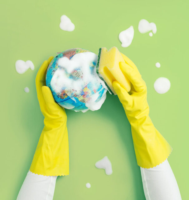 ১৯৬০-এর দশকে এই ধারণার উৎপত্তি হয়েছিল একটি হোটেল থেকে। তারা পরিবেশ রক্ষার দোহাই দিয়ে হোটেল রুমের টাওয়েল না ধুয়ে আবার ব্যবহারের নোটিশ ঝুলিয়ে দিয়েছিল। অবশ্য এতে হোটেলের লন্ড্রি খরচের সাশ্রয় হয়েছিল অনেকখানি। ১৯৮৬ সালে জে ওয়েস্টারভেল্ট এই ধারণার নামকরণ করেন গ্রিনওয়াশিং।