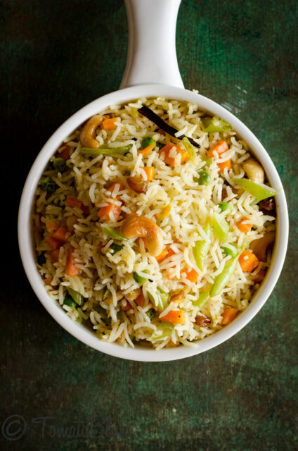 এ উদ্দেশ্যে পোলাও রান্নায় পেঁয়াজ বাদ দিতে হবে। বড়জোর রান্না শেষে এর ওপর বেরেস্তা ছড়িয়ে দেওয়া যেতে পারে। তা ছাড়া পোলাওর চাল ধোয়ার সময় খুব ভালো করে কচলে ধুতে হয়। রান্নার আগে চাল খুব অল্প সময় ভাজতে হবে। বেশি ভাজলে পোলাও বাদামি হয়ে যেতে পারে। পোলাও সুস্বাদু করার জন্য অনেকেই পানির বদলে দুধ ব্যবহার করার পরামর্শ দিয়ে থাকেন। এ ক্ষেত্রে দুধ ও পানি আধা-আধি হলে পোলাও মুখরোচক হবে। পোলাওয়ে অতিরিক্ত সবজি যোগ করলেও এর স্বাদের হেরফের ঘটতে পারে। এ ক্ষেত্রে ২ কাপ চালের জন্য বড়জোর দেড় কাপ সবজি যোগ করা যেতে পারে। আবার সবজির কারণেও পোলাওয়ের রঙে বদল আসতে পারে। তাই সেগুলো পোলাওয়ে দেওয়ার আগে লবণপানিতে সামান্য সেদ্ধ করে নেওয়া ভালো। পোলাও ভাজার সময়েই সবজি যোগ করে নেওয়া যেতে পারে। পোলাওয়ের সঙ্গে গরমমসলা দিয়ে সবজি কিছুটা ভেজে নিলে স্বাদ আরও বাড়বে।