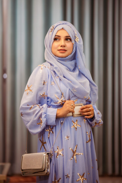 কাজের খাতিরে মিটিং বা পার্টি লেগেই থাকে মারিয়ার যাপিত জীবনে। করপোরেট মিটিং, লাইভসেশন কিংবা কোনো কোম্পানির সঙ্গে তার কোলাবোরেশন মিটিং—এসব জায়গায় খুবই সাধারণ পোশাকে উপস্থিত থাকতে বেশি স্বাচ্ছন্দ্য বোধ করেন। তবে ব্লেজার স্যুট তার সবচেয়ে পছন্দ। নানা রঙের ব্লেজারের সমারোহ রয়েছে তার। মূলত প্রোগ্রামের ধরন বুঝে পোশাক নির্বাচন করেন। ওয়েস্টার্ন থিমের পার্টিগুলোতে সাধারণত ওয়েস্টার্ন টাইপের গাউন, ফ্লোরাল গাউন কিংবা এ ধরনের লাইট কালারের গাউন পরে অ্যাটেন্ড করেন। ব্রাইডাল প্রোগ্রামে যান শারারা ঘারারা পরে। শাড়ি খুব একটা পরা হয় না। মারিয়ার ফ্যান-ফলোয়াররা তাকে শাড়িতে হয়তো খুবই কম দেখেছেন। মূলত হিজাব পরার জন্যই শাড়ি পরা হয় না। তার মতে, হিজাবের সঙ্গে শাড়িতে তাকে খুব একটা মানায় না। মেকআপের ক্ষেত্রে নিজের ও তার ক্লায়েন্টদের জন্য স্যাটেল মেকআপটাই পছন্দ করেন। মেকআপ যেন ওভার ডু মনে না হয়, সেদিকে বিশেষ খেয়াল থাকে তার। মারিয়া বলেন, ‘আমার কাছে মনে হয় গ্লামারাসের মধ্যেও যদি একটা সফট অ্যান্ড স্যাটেল লুক থাকে, তাহলে আমাদের টোটালি যে পোর্ট্রেট হয়, ছবিগুলো অনেক বেশি সুন্দর আসে।’