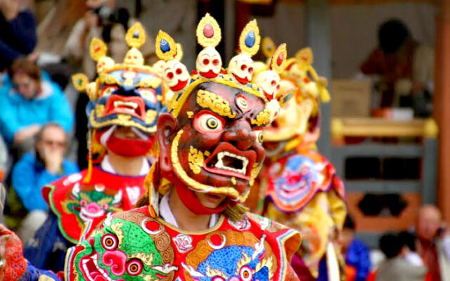 মংক ড্যান্সে মেতেছেন ভিক্ষুরা। বিভিন্ন রঙের লম্বা পোশাক আর মুখোশ পরে। এই নৃত্যের, এই উৎসবের রয়েছে পরমার্থিক তাৎপর্য। লিখেছেন ফাতিমা জাহান