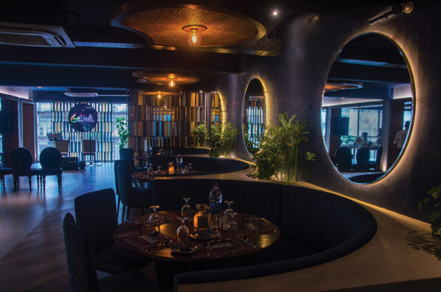 আরামদায়ক অর্ধবৃত্তাকার সোফায় বসে রেস্তোরাঁর দিকে নজর দেওয়া গেল এরপর। সোফার পেছনে ফলস প্যাপিরাস, উইপিং ফিগ গাছ দিয়ে সাজানো হয়েছে। আয়নায় টাংস্টেন লাইটের প্রতিফলনে আলো-আঁধারি, সবুজ গাছ মিলে বেশ আরামদায়ক বসার আয়োজন। ম্যানেজার জানালেন, পুরো রেস্তোরাঁয় বসার আয়োজন প্রায় ৮০ জনের। লাইভ মিউজিকের ব্যবস্থাও রয়েছে। একটু পর ঢুঁ মেরে গেলেন এখানকার রসবতী সামলানোর দায়িত্বে থাকা পাকিস্তানি শেফ মুহাম্মাদ আসিম খান। করাচিতে বেড়ে ওঠা এই তরুণের ঝুলিতে রয়েছে বিশ্বের নানান জায়গায় কাজ করার অভিজ্ঞতা। তিনিই জানালেন, এখানে মূলত উত্তর ভারতীয়, পাকিস্তানি আর আফগানি তরিকার কাবাব আর কারির কারবার।