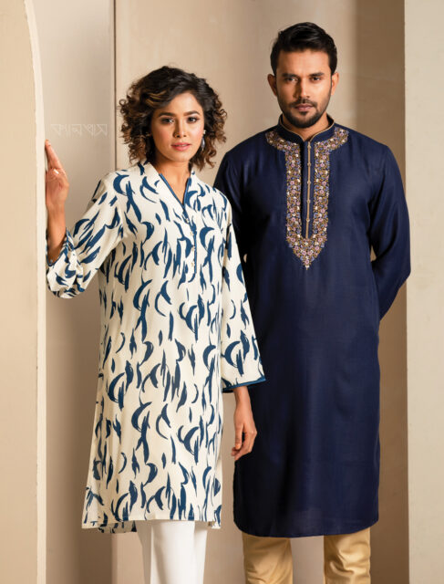 রয়্যাল ব্লু পাঞ্জাবিতে নকশির ফোঁড়