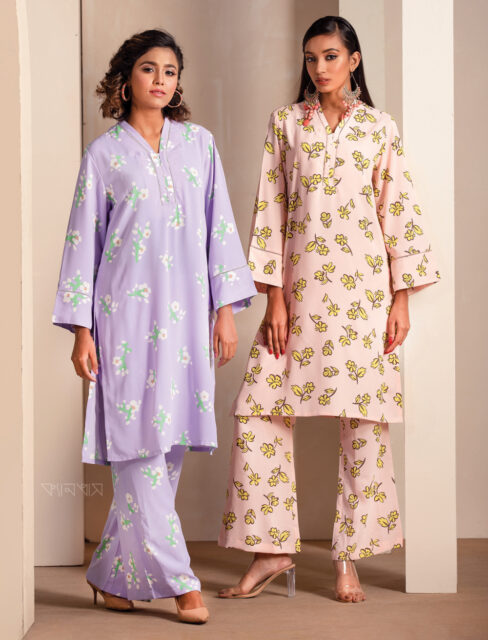 ল্যাভেন্ডার ফ্লোরাল কো-অর্ড কামিজ সেট