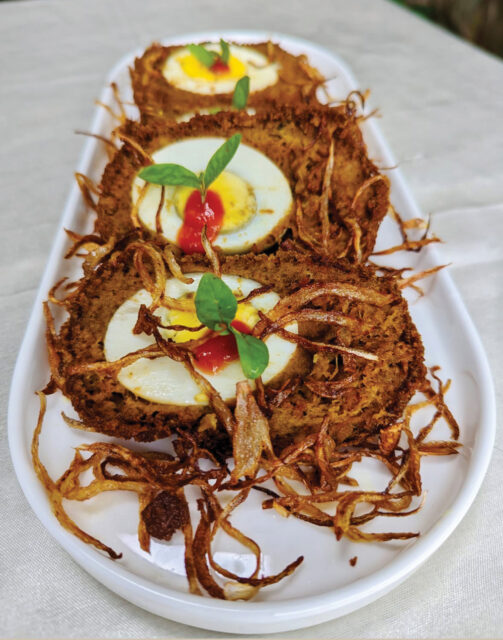 প্রণালি: মাংসের কিমার সঙ্গে প্রথম পর্বের সব উপকরণ মিশিয়ে নিন। দ্বিতীয় পর্বে ছানা ভালো করে মাওয়া দিয়ে মথে নিন। ফুড কালার দিন, যেন ডিমের কুসুমের রং হয়। এবার সেদ্ধ ডিম দুই ভাগ করে, কুসুমগুলো সাবধানে বের করে নিন এবং খালি জায়গায় ছানার ডো ভরে দিয়ে, অন্য ভাগ দিয়ে সেট করে নিন। তারপর আস্ত ডিমের ওপর কিমার ডোয়ের আস্তরণ দিয়ে ঢেকে দিন। এবার ফেটানো ডিমে ডুবিয়ে বিস্কুটের গুঁড়া মেখে ডুবো তেলে ভেজে নিন। একটু ঠান্ডা হলে ধারালো ছুরি দিয়ে দুই ভাগ করে, ওপরে বেরেস্তা ছিটিয়ে পরিবেশন করুন গরম-গরম লাহোরি নার্গিসী।