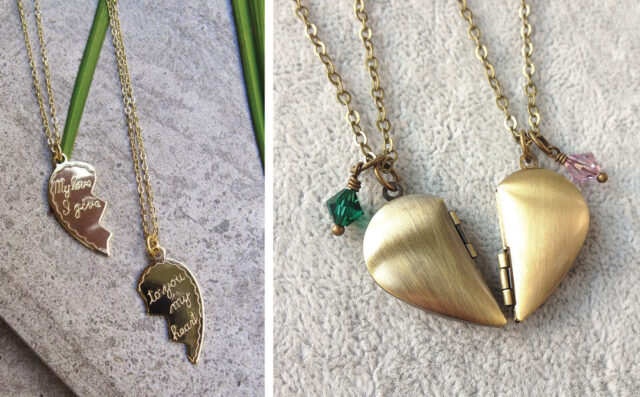 টুইন লকেট অথবা ক্র্যাকিং হার্ট লকেট হিসেবেও পরিচিত। মূলত একটি হার্ট শেপের লকেটকে দুটি ভাগ করে নেওয়া যায় এ ক্ষেত্রে। তারপর এই দুটো টুকরো দুজন পরে নেয়। এর প্রতীকী অর্থ হচ্ছে হৃদয় তখনই সম্পূর্ণ হবে, যখন দুজন মানুষ একত্র হবে। এ ছাড়া নিজের হৃদয়ের একটি অংশ প্রিয়জনের কাছে রেখে দেওয়ার যে রোমাঞ্চকর অনুভূতি, তা উপভোগ করতেও অনেকে উপহার হিসেবে পছন্দ করেন এ ধরনের লকেট। এখনকার অনেক ব্রোকেন হার্ট লকেটে আবার নানা রকমের বার্তাও খোদাই করা থাকে। কোনো কোনোটায় আবার পুরে নেওয়া যায় ছবি। লং ডিস্টেন্ট কাপলদের জন্যও উপহার হিসেবে চমৎকার এই ধরনের জুয়েলারি পিসগুলো। সোনা, রুপা, প্লাটিনাম দিয়ে গড়ে নেওয়া যায় এ ধরনের লকেট। অনেক সময় এতে জুড়ে দেওয়া হয় ছোট ছোট হীরকখণ্ড কিংবা রাইনস্টোন। কম বাজেটের মধ্যে তামা, পিতল কিংবা স্টিল দিয়েও গড়ে নেওয়া যায় এগুলো। তবে কেনার সময় খেয়াল রাখতে হবে লকেটের ক্র্যাক অর্থাৎ ফাটল ধরা অংশটা যেন নিখুঁত হয়, যা চাপ দিলে সহজেই ভেঙে যাবে আবার জুড়েও যাবে। কারণ, পুরো লকেটের মধ্যে থাকা এই ফিচারটাই সবচেয়ে গুরুত্বপূর্ণ এবং অর্থবহ।