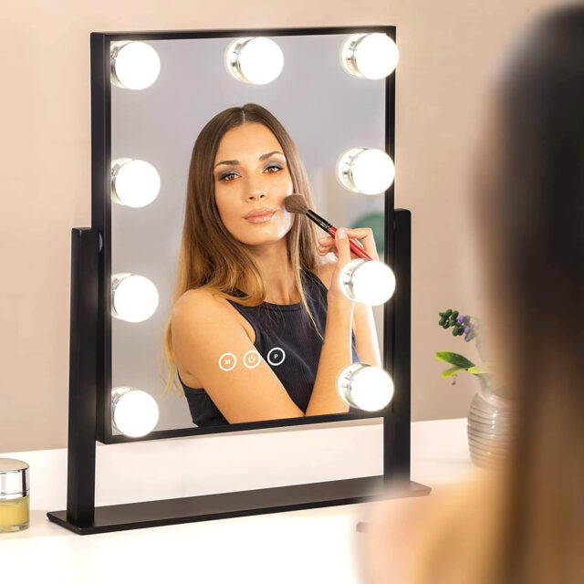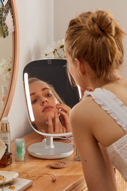 মেকআপের সময় যদি ম্যাগনিফিকেশনের ব্যবহার চান, তবে এই মিরর উপযুক্ত। সূক্ষ্ম কাজ যেমন আইব্রাও টুইজিং কিংবা ডিটেইলিং মেকআপের জন্য রিং লাইটযুক্ত বৃত্তাকার এই মিরর খুবই কাজের। এই মিরর পাঁচ গুণ জুম-ইন করে দেখতে পারেন; আলোর উজ্জ্বলতা কমানো বা বাড়ানো যায় তিনটি ধাপে। ম্যাগনিফাইং মিররের ঠিক পাশে, ওটলাইটে রয়েছে একটি বিল্ট-ইন ফোন চার্জিং স্ট্যান্ড, কিউআই সামঞ্জস্যপূর্ণ ফোনের জন্য ওয়্যারলেস চার্জিং এবং তৈরি হওয়ার সময় টিউটরিয়াল দেখার বা বন্ধুদের সঙ্গে ফোনে জমিয়ে আড্ডার জন্য যথেষ্ট।