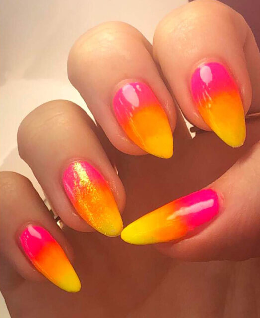 সূর্যের আলোয় আলোকিত গ্রীষ্মের সঙ্গে উজ্জ্বল রঙের সন্ধি বেশ জমজমাট। নখেও দেখা যায় এর প্রভাব। উজ্জ্বল রং গ্র্যাডিয়েন্ট গ্রামারে নখে পলিশ করে নিতে পারেন। নিয়নও থাকতে পারে কালার প্যালেটে। তবে মনে রাখা চাই, এটি খানিকটা সময়সাপেক্ষ। তাই হাতে যথেষ্ট সময় নিয়ে বসে পড়ুন।