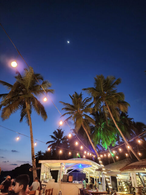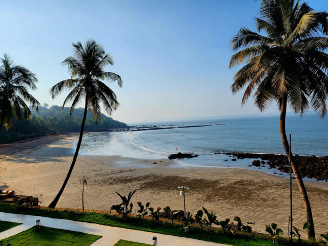 কক্ষে ঢুকে বারান্দার স্লাইড ডোর খুলতেই রিসোর্টের প্রাইভেট বিচ। সশব্দ সাগরের সফেদ ফেনা দেখে আমাদের চোখের ঘুমও চলে গেল। তখন ঘড়িতে রাত এগারোটা। বারান্দায় বসে সাগর উপভোগ করছি। মনে পাশে বসে বলল, ‘আমরা এখান থেকে আর যাব না।’ বেচারা আসলে ঢাকা থেকে হায়দরাবাদ আসার পথের উড়ানে ভয় পেয়েছে। বলছিল, ‘অল্পের জন্য বেঁচে গেলাম, পাইলট রোলার কোস্টার চালিয়েছে!’ কথা সত্য। ওই আড়াই ঘণ্টায় আমাদেরই আত্মারাম খাঁচাছাড়া হওয়ার জোগাড় হয়েছিল। বাজে আবহাওয়ার বদৌলতে। যাক, পরে হায়দরাবাদ থেকে গোয়ার এক ঘণ্টার যাত্রা নির্বিঘ্ন হয়েছে, যদিও দূরের ঈশান কোণে মেঘের গায়ে আগুন দেখা গিয়েছিল। কিছুক্ষণের ভেতরেই আমরা ঘুমোতে গেলাম। ঢেউয়ের অনবরত আছড়ে পড়ার শব্দ যেন ঘুম পাড়ানি গানের কাজ করল।
