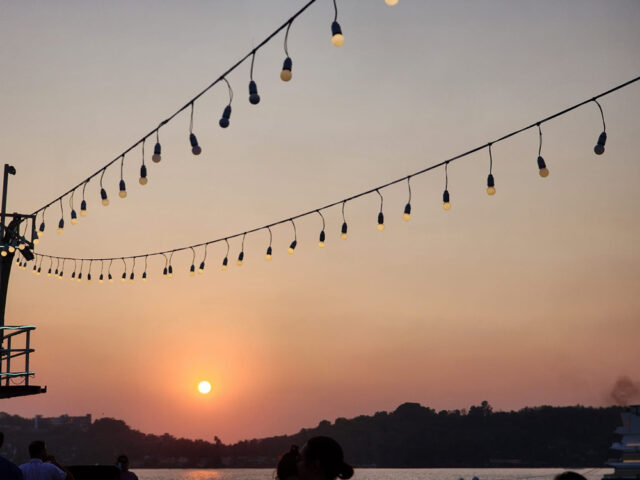 একটা সময় অটল সেতু পেরোলাম। এই ঝুলন্ত সেতু পানাজি আর পরভরিমের যোগসূত্র। সেতু পেরিয়ে নৌবিহারের উদ্দেশ্যে মাঝারি দোতলা জাহাজে পা রাখলাম। জাহাজের নাম প্রিন্সেসা দে গোয়া পিএনজি ৩২৬। সূর্যাস্তের কাল। মান্দবি নদী বেয়ে আমরা যাচ্ছি। জাহাজের দোতলায় রয়েছে মঞ্চ। সেখানে পরিবেশন করা হলো গোয়ার স্থানীয় নৃত্যগীত। নদীর দুধারের সৈকত ও স্থাপনা সম্পর্কে বয়ান চলছে মাইকে। ভাসতে ভাসতে একসময় পৌঁছে গেলাম আরব সাগরের মোহনায়! যেতে যেতে দেখা হলো রেইস ম্যাগোস ফোর্ট ও ফোর্ট আগুয়াডা। আরেকটু দূরে মিরামার সৈকত। সাগরের মোহনায় কিছুক্ষণ থেকে সূর্যডোবা দেখলাম আমরা। এরপর আবার একই পথে ফিরতে শুরু করলাম। ততক্ষণে সন্ধ্যা নেমেছে নদীর জলে। ফিরতি পথে দেখলাম আলো ঝলমলে ভাসমান ক্যাসিনো। মনে বলল, ‘বাবা, ক্যাসিনো কী?’ আমি বললাম, ‘লোকজন যেখানে পয়সা জলে ফেলে!’ মনে কিছুই বুঝল না। যাক! ডাঙায় নেমে গেলাম মিরামারের নামকরা রেস্তোরাঁ দ্য ফিশারম্যানস হোয়ার্ফসে। এরা মৎস্য বেচলেও, বেশ ভালো বিফ স্টেক বানায়। ওয়াইন সহযোগে বেশ উপাদেয়। পরিবেশটি আরও একধাপ সুন্দর করে দিয়েছিল গানবাজনা। গায়িকা একে একে সব পরিচিত গান গাচ্ছিলেন। খাইদাই শেষ করে যখন চলে আসব, জন ডেনভার ভর করেছেন তার কণ্ঠে: ‘কান্ট্রি রোড টেক মি হোম…।’