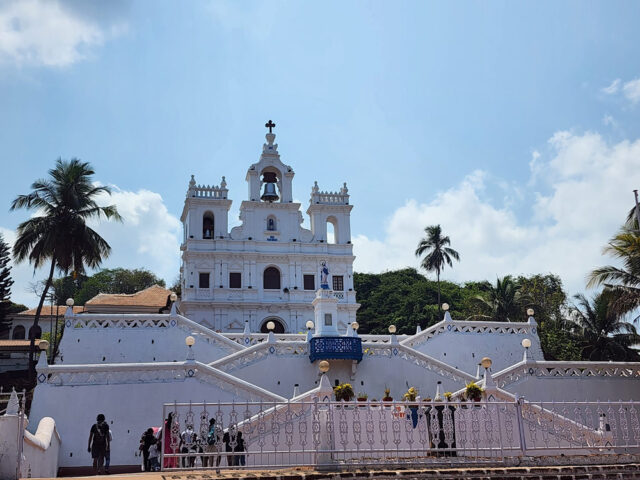 পরদিন বেরোলাম গোয়া দর্শনে। যাত্রার শুরুতেই কিছু কেনাকাটা হলো। সবচেয়ে দামি জিনিসটা কিনলাম আমি। লিওনার্দো দ্য ভিঞ্চির আঁকা ‘শেষভোজ’ চিত্রকর্মের আদলে বানানো ব্রোঞ্জের মূর্তি, পাঁচ হাজার রুপি। দেখেই চোখ আটকে গিয়েছিল, অগত্যা কিনে ফেললাম। মনিও সাহস জুগিয়েছিল। পরে দোকান থেকে বেরিয়ে মিনিট দশেকের ভেতর দেখা মিলল পানজিমের বিখ্যাত ইমাক্যুলেট কনসেপশন চার্চের। এখানে সিনেমার শুটিং হয় দেদার। ‘জোশ’, ‘দিলওয়ালে’, ‘সিম্বা’ প্রভৃতি সিনেমার দৃশ্যে এই গির্জার দেখা মেলে। আমরা চেষ্টা করেছিলাম ভেতরে ঢোকার; দেখলাম সর্বসাধারণের জন্য গির্জাটি তখন বন্ধ। কাজেই বাইরের প্রাঙ্গণেই একটু ঘোরাঘুরি করলাম।