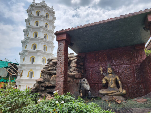 গির্জার পাশেই রয়েছে একটি ছোট সুভ্যেনির শপ। সেখান থেকে মায়ের জন্য জপমালা কিনলাম। নিজের জন্য কিনলাম সাধু জেভিয়ারের জীবনীগ্রন্থ। খ্রিস্টানদের তীর্থস্থান থেকে এবার আমাদের গন্তব্য হিন্দুদের তীর্থস্থানে। ফার্নান্দেজকে নিয়ে চললাম মাঙ্গেসি ট্যাম্পেলে। পানাজি থেকে এটি ২১ কিলোমিটার দূরে। এটাও বেশ গুরুত্বপূর্ণ স্থাপনা। সাড়ে চার শ বছরের পুরোনো মন্দিরটি উৎসর্গ করা দেবতা শিবকে। গাড়ি এসে থামল একটা খোলা জায়গায়। পার্কিং এরিয়া। ওখান থেকে হেঁটে যেতে হবে। প্রখর রোদ। হেঁটে যেতে লাগবে দশ কি বারো মিনিট। মনের জন্য চিন্তা। ঠিক হলো, ওকে ফলের রস আর পানি খাইয়ে, মাথায় টুপি পরিয়ে নেওয়া হবে। গাড়ি থেকে নেমেই আমরা আগে ডাবের পানি খেলাম। পানি কিনে নিলাম। এরপর আস্তে আস্তে হাঁটতে হাঁটতে পৌঁছে গেলাম মন্দিরে। দেখলাম, মন্দিরের একাংশে সংস্কারকাজ চলছে। ধবধবে সাদা রং করা মন্দিরের গায়। ভেতরে ঢুকতে হলে জুতো খুলতে হবে। মনে কান্নাকাটি শুরু করে দিল, সে জুতো খুলবে না। কারণ, গরমে মন্দিরের বাঁধানো প্রাঙ্গণ তেতে আছে। খালি পা রাখা আসলেই মুশকিল। নিরুপায় হয়ে ছায়ায় দাঁড়িয়ে কিছুক্ষণ দেখা হলো মাঙ্গেসি মন্দির।