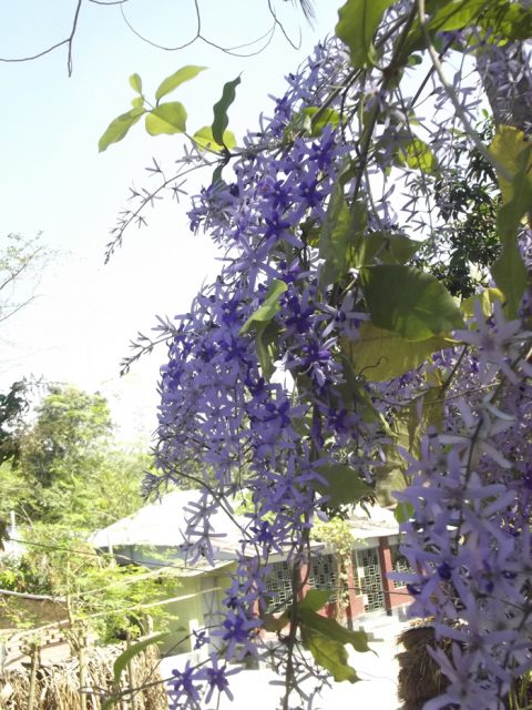 তিনতলা এই বাড়ির ভেতরের সাজ একদম আলাদা। থাকার ঘর দ্বিতীয় তলায়। সেখানে গ্রিল দেয়া খোলা বারান্দা, সামনে ছোট ছাদ আর দুদিকে সানশেড বেয়ে বেড়ে ওঠা লতা। সানশেডেও বাগান আছে। মূলত এই বাগানের সার্থকতা হলো, এখানে সব কামরার জানালার সামনে একটা ফুল গাছ আছে। এই যেমন বেলি কিংবা কামিনী। সেখান থেকে ঝুলে পড়া ড্রাগন চেরির গাছ। রাতের এসব ফুলের ম-ম গন্ধ মাতাল করে দেয় দেহমন। মনে আসে: ‘ফুলের গন্ধে ঘুম আসে না/ একলা জেগে রই’।