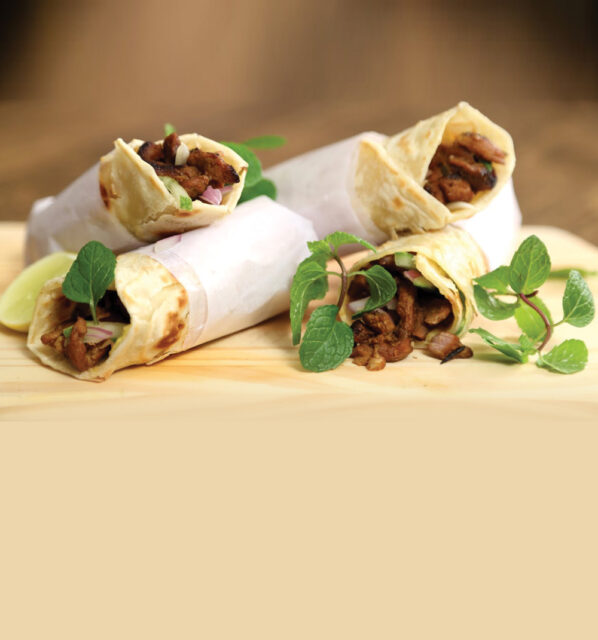 প্রণালি: একটি পাত্রে খাসির মাংস নিয়ে একে একে আদাবাটা, রসুনবাটা, হলুদগুঁড়া, মরিচগুঁড়া, গরমমসলা, লেবুর রস, লবণ ও টক দই মিশিয়ে মেরিনেট করে নিয়ে কমপক্ষে ২ ঘণ্টার জন্য ফ্রিজে রেখে দিতে হবে। এরপর একটি প্যানে ৩ টেবিল চামচ তেল গরম করে তাতে খাসির মাংস ১ মিনিট ধরে ভেজে নিন। ভাজা হয়ে গেলে নামিয়ে নিতে হবে। এবার একটি ফ্ল্যাট প্যানে ৩ টেবিল চামচ তেল গরম করে তাতে একটি রুটি দিয়ে তার ওপর একটি ডিম ভেঙে দিন। তারপর অল্প আঁচে ভাজা হয়ে গেলে প্যান থেকে রুটি নামিয়ে তার ওপর ভাজা মাটন দিতে হবে। এবার তার ওপর পেঁয়াজ স্লাইস, কাঁচা মরিচের কুচি, ধনেপাতার কুচি এবং চাট মসলা দিতে হবে। এবার রুটিটি রোল করে নেওয়া চাই।
