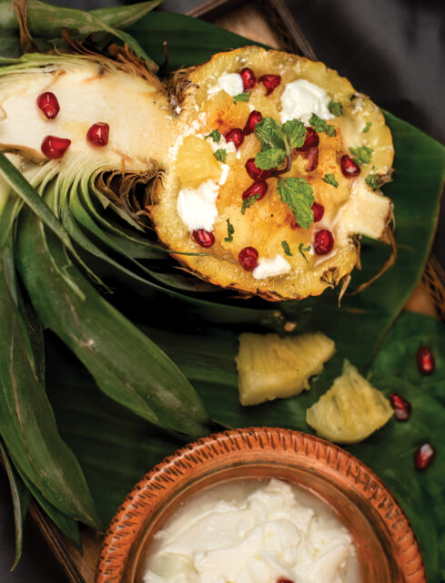 উপকরণ: আনারস (কিউব করে কাটা) ১ কাপ, আনার ১/২টি, টক দই ১ কাপ, মরিচগুঁড়া ১/৪ চা-চামচ, টালা জিরাগুঁড়া ১/২ চা-চামচ, চিনি স্বাদমতো, বিট লবণ স্বাদমতো, পুদিনাপাতা (সাজানোর জন্য) ২ টেবিল চামচ।