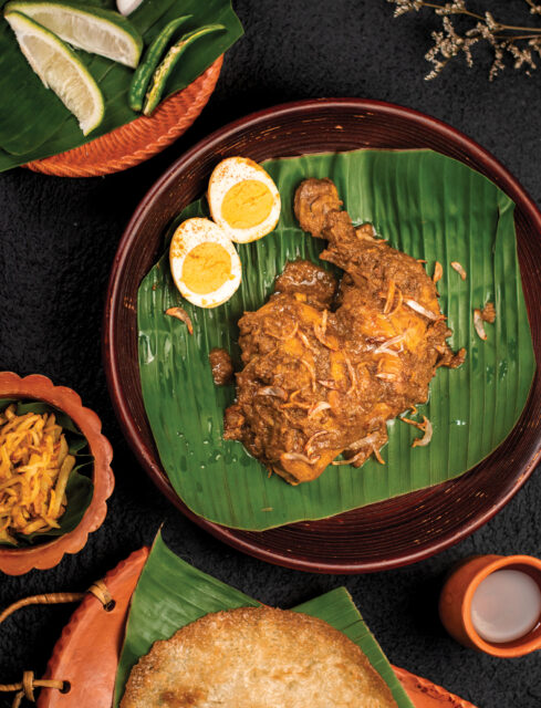 প্রণালি: প্রথমে কাজুবাদাম, কাঠবাদাম ও পেস্তা মিহি করে বেটে রেখে দিন। এবার একটি বড় বাটিতে মুরগি, পেঁয়াজবাটা, মরিচগুঁড়া, আদা-রসুনবাটা, দই, লবণ দিয়ে ম্যারিনেট করে ১ ঘণ্টা রাখুন। নন-স্টিক প্যানে ঘি ও তেল গরম করে দুটি দারুচিনি, ৪-৫টি লবঙ্গ, ৮-১০টি গোলমরিচ ও ২টি তেজপাতা দিয়ে ফোড়ন দিন। সুঘ্রাণ বের হলে ম্যারিনেট করা মুরগি যোগ করে, নেড়ে কষিয়ে ঢেকে মাঝারি আঁচে রান্না করুন। কিছুক্ষণ পর ঢাকনা তুলে কাজু, কাঠবাদাম, পেস্তাবাটা, ধনেগুঁড়া, বেরেস্তা, শাহি জিরাগুঁড়া ও সামান্য চিনি দিয়ে ভালো করে নেড়ে মিশিয়ে নিন। এরপর আবার ঢেকে দিন। আঁচ বাড়িয়ে ফোটাতে থাকুন যতক্ষণ না ঝোল ঘন-ঘন হচ্ছে। গ্রেভি ঘন হয়ে এলে কেওড়া জল ছড়িয়ে আঁচ বন্ধ করে চুলার ওপর কিছুক্ষণ ঢেকে রাখুন। তারপর নামিয়ে নিয়ে লুচি, রুটি বা পরোটার সঙ্গে পরিবেশন করুন। সঙ্গে দিন ঝুরি করে ভাজা আলু এবং সেদ্ধ ডিম।