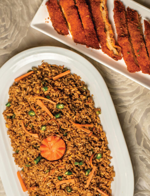 উপকরণ: পোলাও চাল (চিনিগুঁড়া বা কালোজিরা) ১ কাপ, লবণ স্বাদমতো, পানি পরিমাণমতো, সয়াবিন তেল পরিমাণমতো, রসুনকুচি ২ টেবিল চামচ, বরবটিকুচি ১/২ কাপ, গাজরকুচি ১/২ কাপ, ক্যাপসিকাম কুচি ১/২ কাপ, গোলমরিচ গুঁড়া ১ চা-চামচ, ডার্ক সয়া সস ১ টেবিল চামচ, অয়েস্টার সস ১ চা-চামচ, তেঁতুলের সস ১ টেবিল চামচ, সুইট চিলি সস ২ টেবিল চামচ।