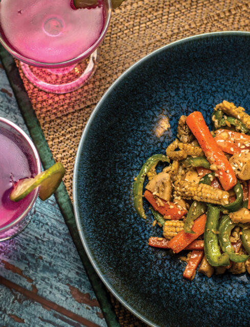 উপকরণ: কয়েক রকম সবজির (পেঁপে, গাজর, বরবটি ইত্যাদি) স্লাইস ১ কাপ, আদাকুচি ১/২ চা-চামচ, রসুনকুচি ১/২ চা-চামচ, কাঁচা মরিচের কুচি ১/২ চা-চামচ, ক্যাপসিকাম (লাল ও সবুজ, টুকরো করে কাটা) ২ টেবিল চামচ, ক্যানড বেবি কর্ন (টুকরো করা) ১ টেবিল চামচ, ক্যানড মাশরুম স্লাইস ২ টেবিল চামচ, লবণ ও চিনি স্বাদমতো, তেল ও মাখন পরিমাণমতো, গোলমরিচগুঁড়া পরিমাণমতো।