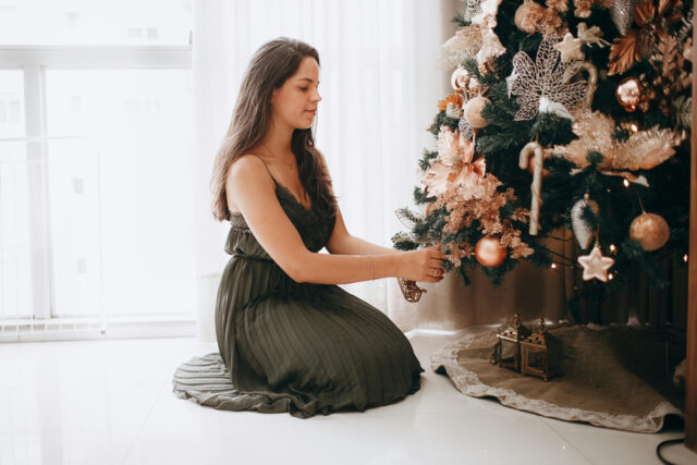 ঘরের কেন্দ্রস্থলে একটি ক্রিসমাস ট্রি রাখা হয়। টিনসেল, রঙিন বল, ফেইরি লাইট ও তারায় সাজানো হয় সেই ট্রি। এর নিচে রাখা হয় উপহারের বাক্স।