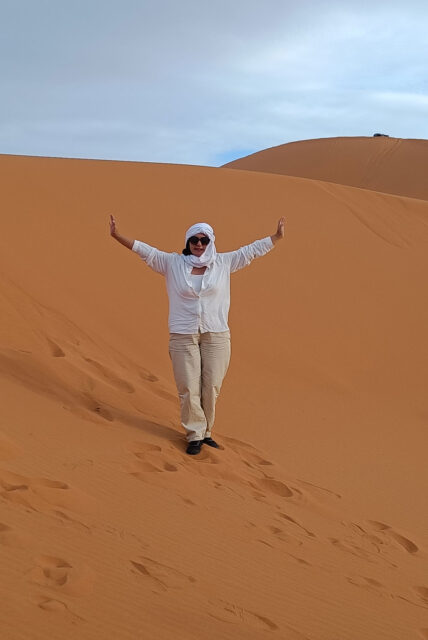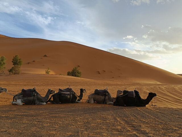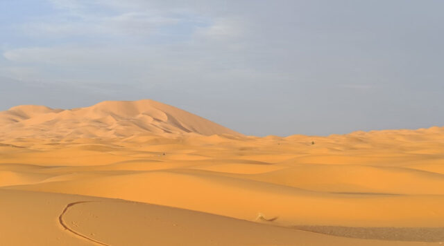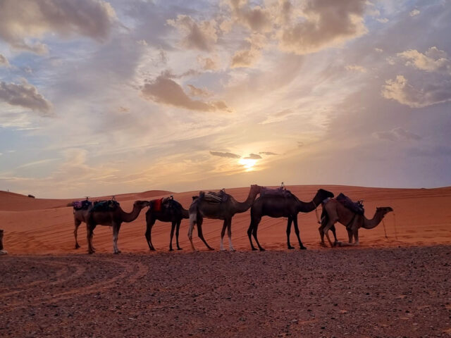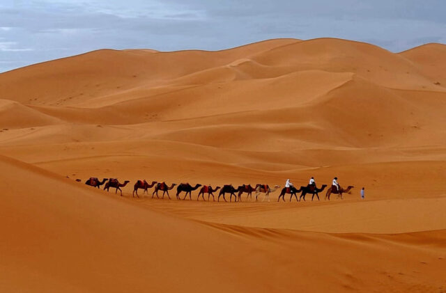 গাড়িতে আরবি গান বাজছে। গানের ডিজে আরব দেশের একটি মেয়ে। তার সঙ্গে গাড়ি কাঁপিয়ে পারলে নেচে উঠেছেন ভ্রমণকারী বাকি সঙ্গী-সাথিরা। আমি বসে আছি সামনের সিটে। পাশের সিটে কলম্বিয়া থেকে আসা মারিয়া। এক বর্ণও ইংরেজি জানেন না। আমিও এক বর্ণ স্প্যানিশ জানি না। গতকাল সকালে পরিচয়। আমরা গ্রুপ ট্যুরে যাচ্ছি সাহারা মরুভূমির মাঝে মেরজুগা নামের একটি জনমানবহীন মরু প্রান্তরে। এই গ্রামের অবস্থান মরক্কোর দক্ষিণ-পূর্বাঞ্চলে।